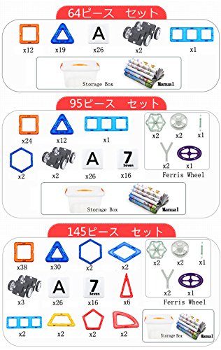 HenMerry磁石ピース マグネットブロッグ 磁気おもちゃ 子供用 DIY積み木 創造力を育てる知育玩具 (収納ケース付き) (95ピース)