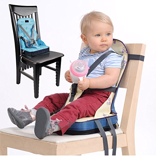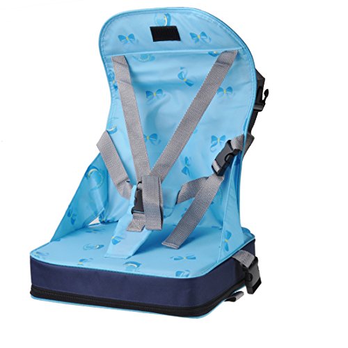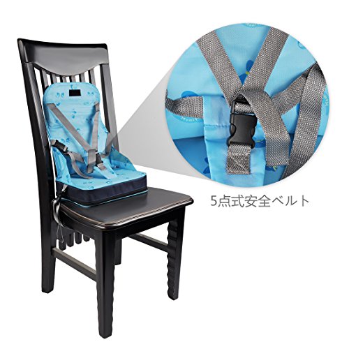 (ヘラサ)Herasa ベビー用 食事チェアクッション 撥水 背もたれ付 椅子クッション 赤ちゃん用 折りたたみ 持ち運び (青)