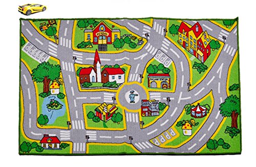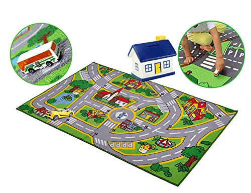 - 線路や道路でお持ちの電車のオモチャやミニカーを使って 遊ぶことができる知育的要素も含んだキッズマットです。