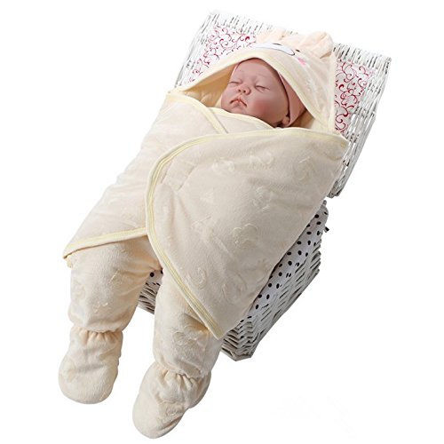 (ヘラサ)Herasa 赤ちゃん おくるみ ベビー抱き布団 赤ちゃん寝袋 包み込む ぐっすり 寝具 秋冬 厚手 出産祝い 贈り物 (L, 黄)