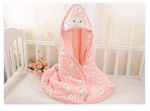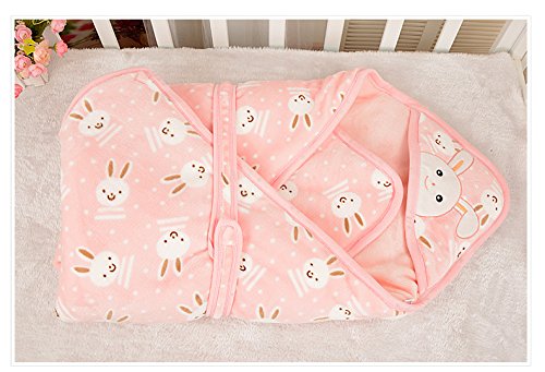 (ヘラサ)Herasa 赤ちゃん おくるみ ベビー抱き布団 赤ちゃん寝袋 包み込む ぐっすり 寝具 かわいい ウサギ柄 秋冬 厚手 出産祝い 贈り物 (ピンク)