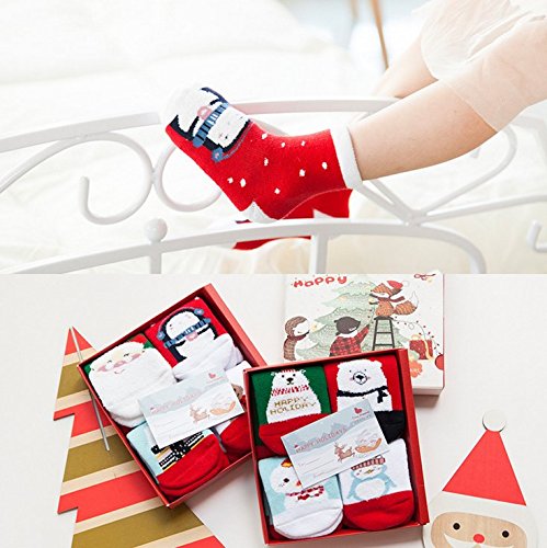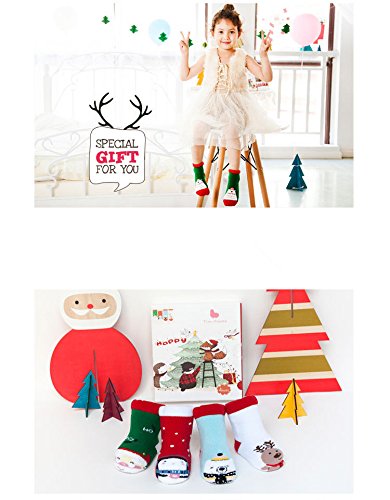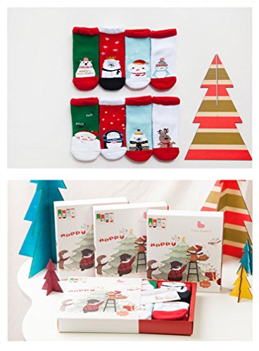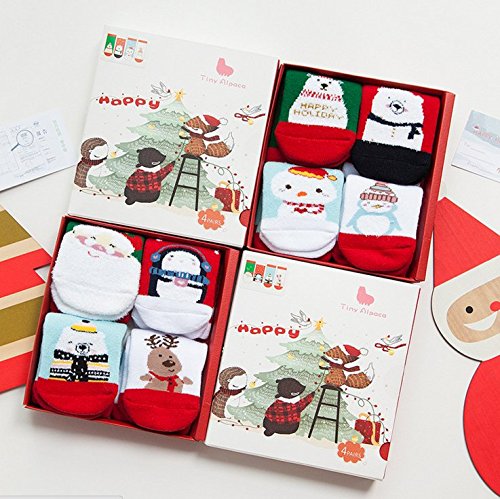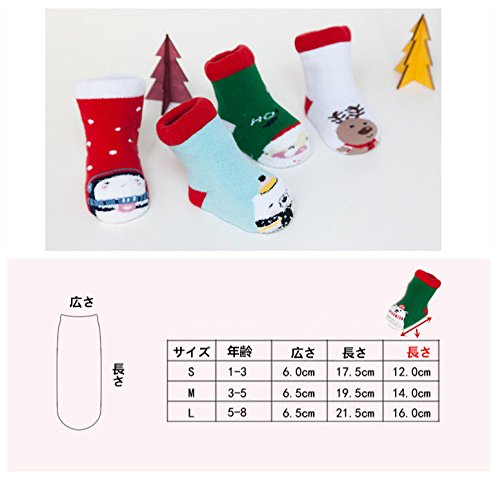 (ヘラサ)Herasa キッズクリスマスソックス ベビーソックス かわいい 靴下 赤ちゃん靴下 男の子 女の子 出産お祝い 贈り物 4足セット ボックス付き (S, B)