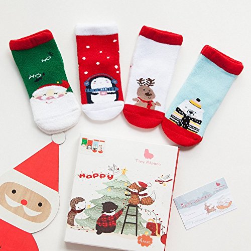 (ヘラサ)Herasa ベビー クリスマスソックス キッズソックス かわいい 靴下 赤ちゃん靴下 男の子 女の子 出産お祝い 贈り物 4足セット ボックス付き (S, A)