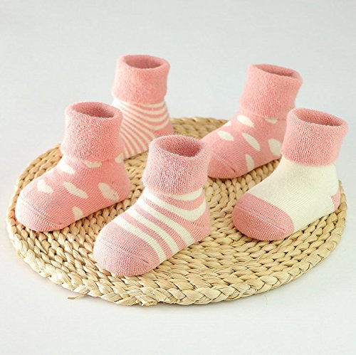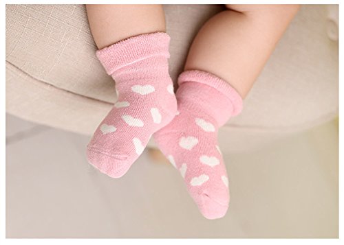 (ヘラサ)Herasa ベビーソックス かわいい 靴下 赤ちゃん靴下 男の子 女の子 出産お祝い 贈り物 5足セット (S, ピンク)