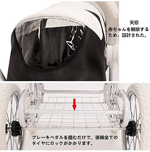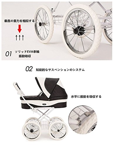 - 大型車輪を採用するにあたりヨーロッパ基準で設計し、小さな日本のベビーカーより大きく・重くなりました。しかしながら、丈夫でしっかりとした素性の良さを皆様に提供できると信じております。