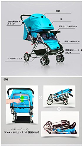 (ヘラサ)Herasa 両対面ベビーカー ベビーロッキングチェア ベビーバギー 折りたたみ 振動・吸収 多機能 「対象月齢:6ヶ月~36ヶ月」 (青)