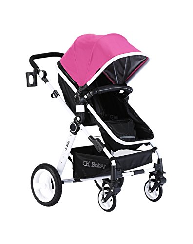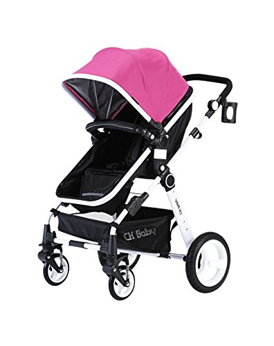(ヘラサ)Herasa 両対面ベビーカー ハイシート ベビーバギー 折りたたみ 振動・吸収 通気性よい UVカット「対象月齢:0ヶ月~36ヶ月」 (バラ)