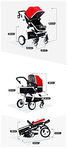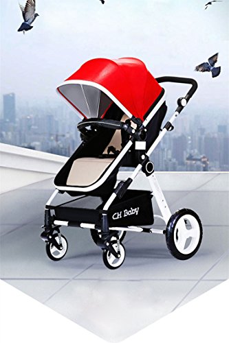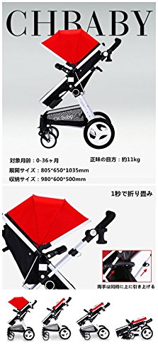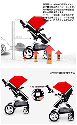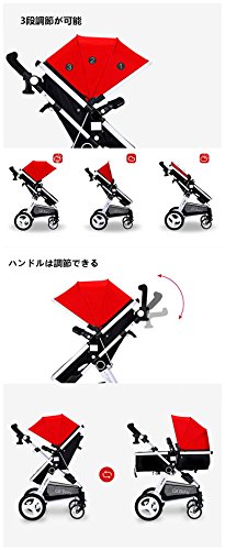 (ヘラサ)Herasa 両対面ベビーカー ハイシート ベビーバギー 折りたたみ 振動・吸収 通気性よい UVカット「対象月齢:0ヶ月~36ヶ月」 (赤)