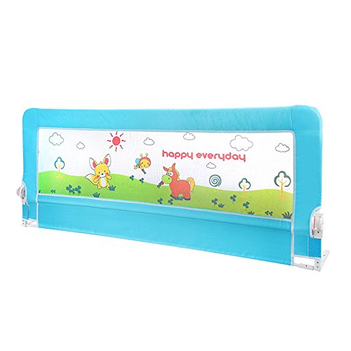 (ヘラサ)Herasa ベッドフェンス ベッドレール 掛け布団のずれ防止 ベビーベッドガード ポータブル オシャレ 丈夫 一枚 (1.5m, 青)