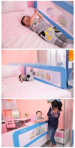 (ヘラサ)Herasa ベッドフェンス ベッドレール ベビーベッドガード ポータブル かわいい (1.8, 青い 汽車)
