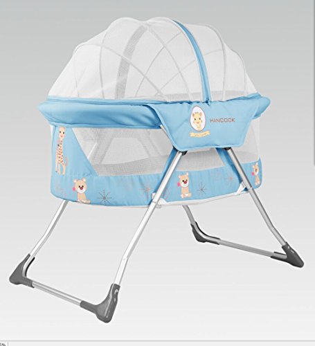 (ヘラサ)Herasa ベビーベッド 折りたたみ ミニベッド 旅行ベッド オシャレ ポータブル 収納袋付き コンパクト 軽量 通気性良い「適用月齢:0~6ヶ月」 (ブルー)