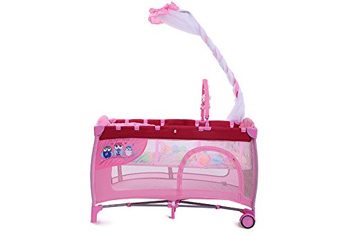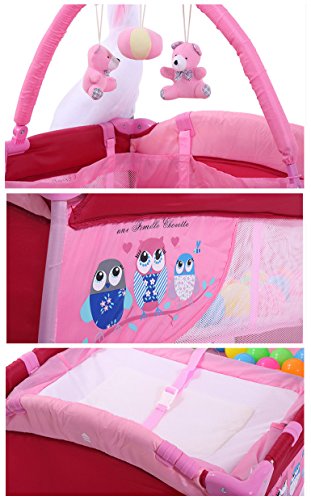 (ヘラサ)Herasa ベビーベッド 折りたたみ ポータブル かわいい プリンセスベッド ミニベビーベッド ゲームベッド コンパクト (宮殿風)蚊帳付き オムツ交換台が付き モービル付き 出産祝い