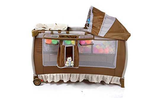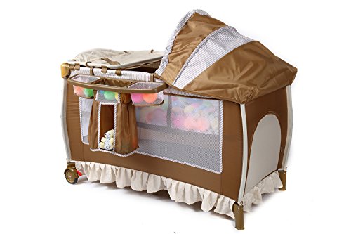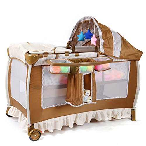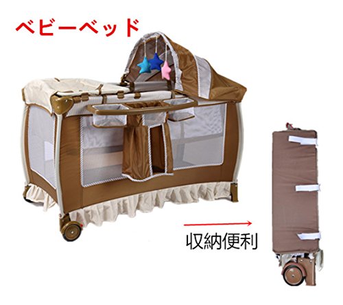 (ヘラサ)Herasa ベビーベッド 折りたたみ 旅行ベッド オシャレ ポータブル 転覆・防止 かわいいモービル付き キャノピー付き おむつ交換台が付き ミニ