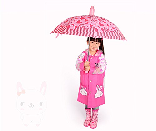 (ヘラサ)Herasa レインコート 子供 カッパ ウサギ 女の子 ランドセル対応 ふかふかのバイザー付き 小学生 (S)