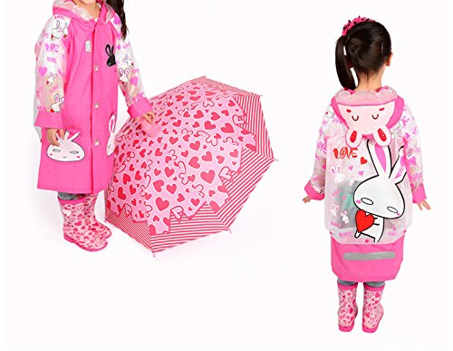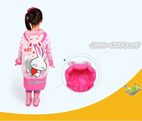 (ヘラサ)Herasa レインコート 子供 カッパ ウサギ 女の子 ランドセル対応 ふかふかのバイザー付き 小学生 (XL)
