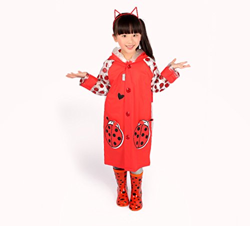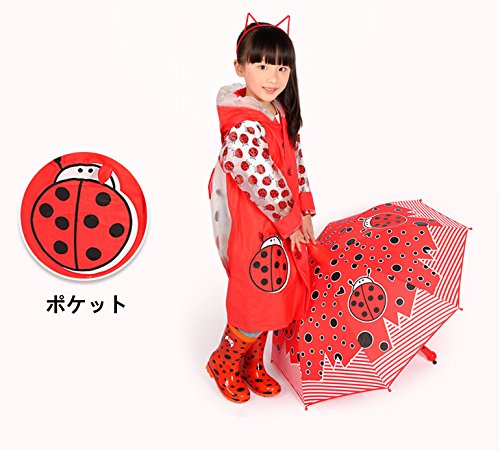 (ヘラサ)Herasa レインコート 子供 カッパ 可愛い動物 女の子 男の子 ランドセル対応 ふかふかのバイザー付き 小学生 (M, 赤)