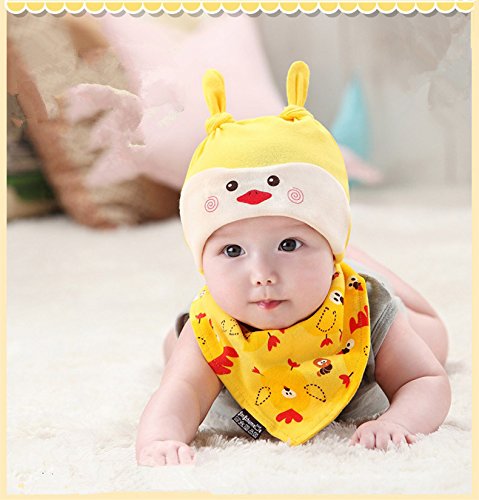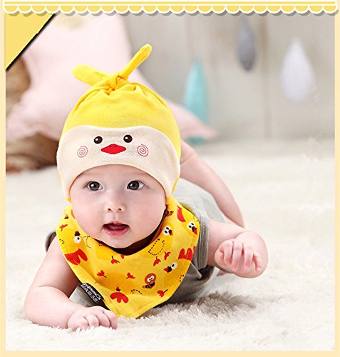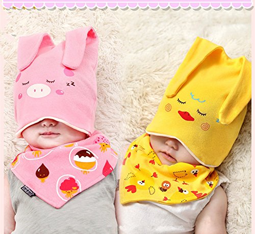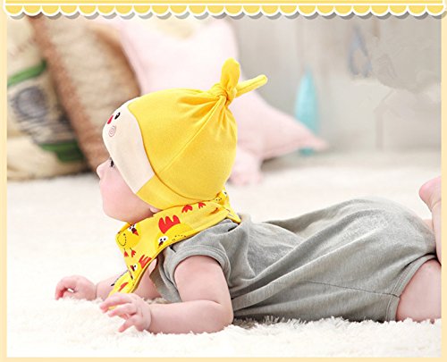 (ヘラサ)Herasa 新生児 帽子 ベビー 帽子 スタイ 2点セット 耳付き かわいい 出産祝い ギフト お祝い (黄)
