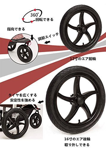 - 押し心地快適で、スムーズに走行・赤ちゃんに伝わる振動も軽減。