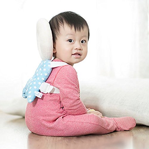 赤ちゃん ごっつん防止 リュックタイプ 頭を保護 乳幼児用 セーフティー 天使 ドット (ブルー)