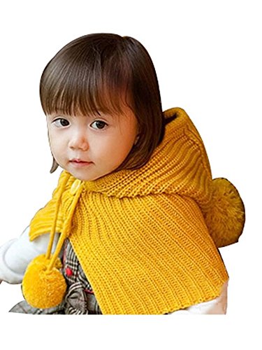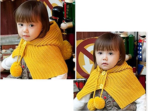 ケープ 赤ずきんちゃん風 ポンチョ 型 ニット 帽子 ベビー 子供 ボンボン付き 頭 首元 肩 まで あたたかい フード (赤)