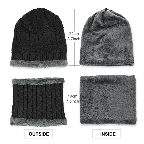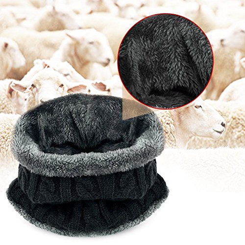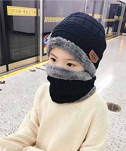 キッズ 子供用 暖かい ニット帽子 ネックウォーマー 裏起毛 男女兼用 2点セット (ブラック)