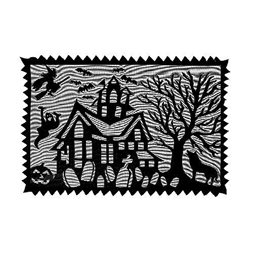 Spooky Hollow 14-inch by 20-inch set of two Black Placemat that has cats and bats, witches and ghosts - and here and there, a haunted house or two - add 'scary chic' to this spooktacular collection.