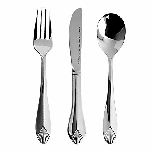 Create the look of elegance with the Safrano Collection flatware set for your children by Heritage Mint.Enjoy years of service with this stainless steel flatware and stainless steel utensil sets Sized to perfectly fit in little hands, Child`s Set is a wonderful gift for a special child in your life, Simple and attractive.These stainless steel utensils are perfect for your formal table.The stainless steel will last a lifetime.Set Includes: 17cm Child Knife, 16cm Child Fork and 15cm Child Spoon.18/10 Stainless Steel, dishwasher Safe and not for use in Microwaves.