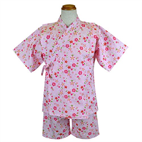 甚平 夏物 じんべいスーツ 日本製生地使用 パジャマ 桜花 朝顔 子供用 女の子(桜花桃90cm)