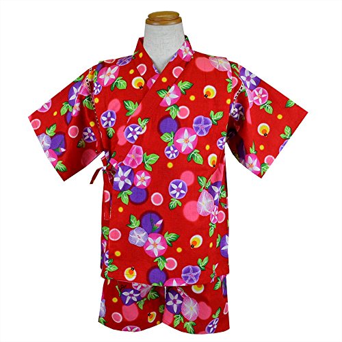 甚平 夏物 じんべいスーツ 日本製生地使用 パジャマ 桜花 朝顔 子供用 女の子(朝顔赤90cm)