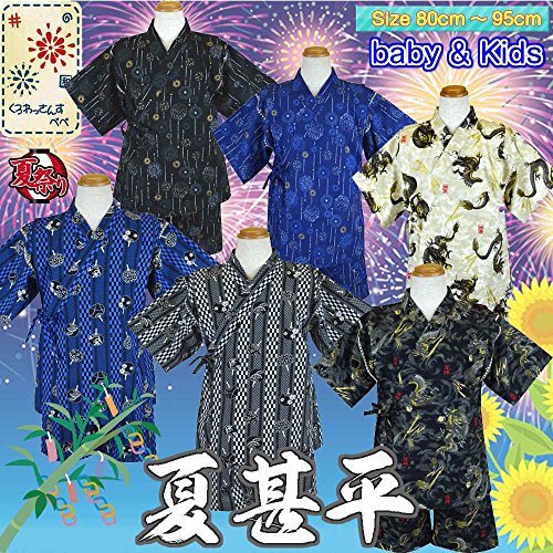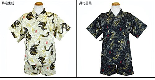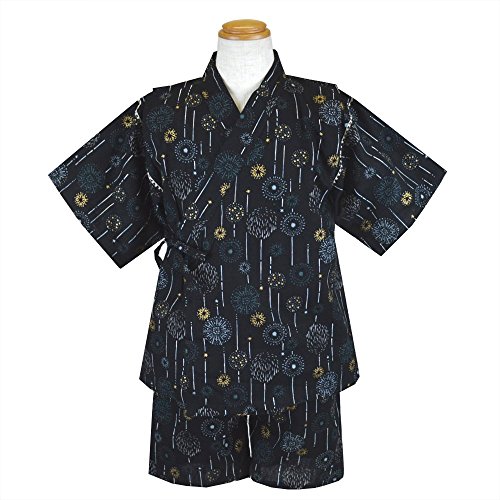 甚平 夏物 じんべいスーツ 日本製生地使用 パジャマ ドラゴン 龍 団扇 花火(花火黒95cm)