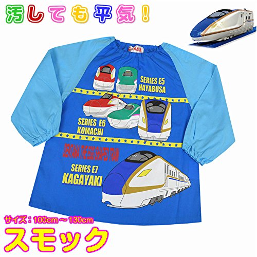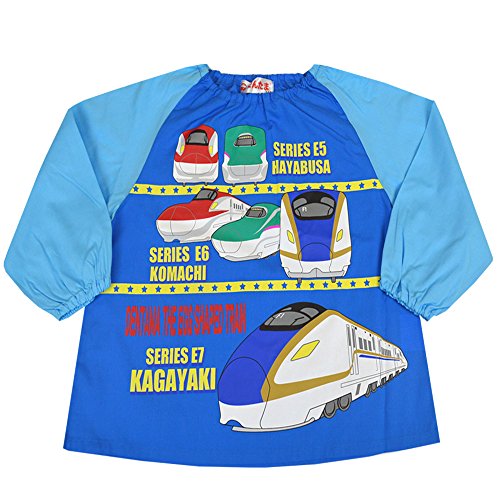 キッズ スモック 男の子 綿100% 新幹線 E5はやぶさ E6こまち E7かがやきお砂場 給食 お弁当 735dt 110cm ブルー