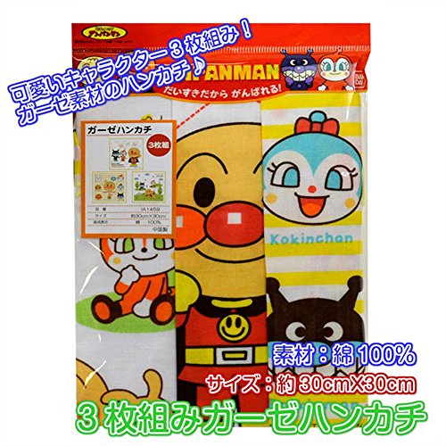 アンパンマン ガーゼハンカチ 3枚セット お風呂 ANPANMAN