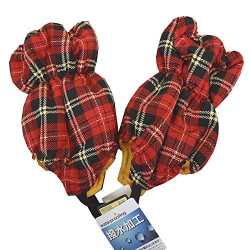 スノーカバー 足カバー 中綿入り フットカバー 雪よけ キッズ ベビー チェック柄 S レッド