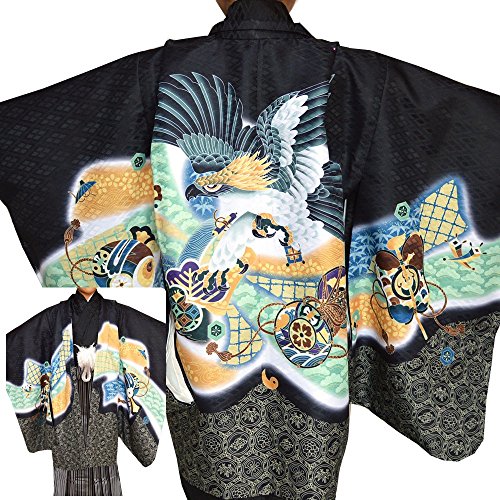七五三 5歳 5才 男児 トータル13点フルセット 男の子 着物 紋付羽織袴 紋付袴 2タイプ/11(鷹に小鎚・黒)