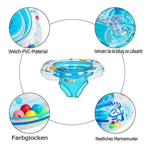 - 浮き輪の底部にはショーツが付き、水に落とさない。赤ちゃんも海やプールで楽しみに遊べます