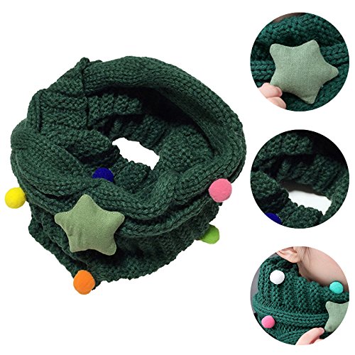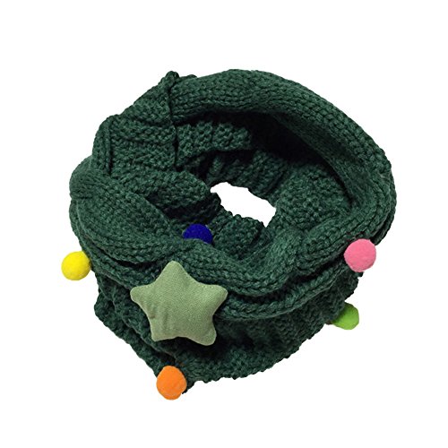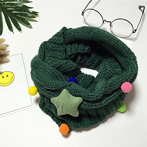 HiCollie キッズ ニット ネックウォーマー スヌード マフラー 星 首巻き ストール 秋冬保温 男女兼用 雪遊び お出かけ クリスマス 正月プレゼント (グリーン)