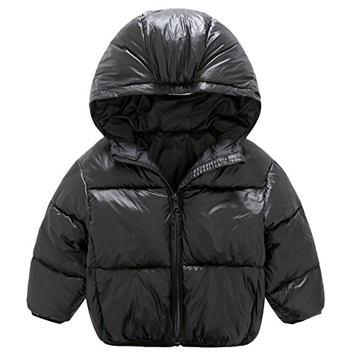 HiCollie 子ども 中綿コート キッズ 防寒 フード付き アウター 秋 冬 ジャケット キッズ 綿服 男女兼用 お出かけ/アウトドア保温 プレゼント (90, ブラック)