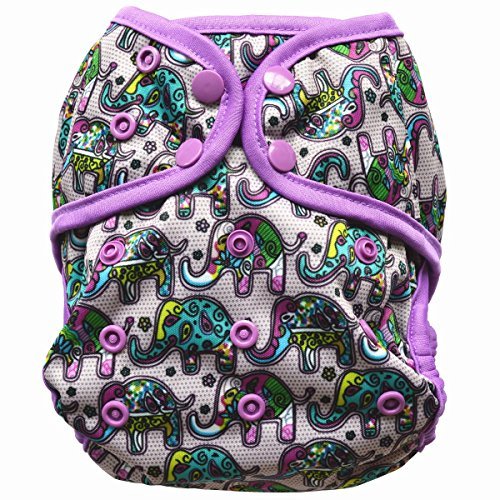 - One Size Cloth Diaper Cover Snap With Double Gusset (Colorful Elephant)
