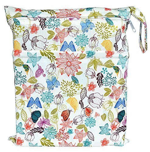 - Wet Dry Bag Baby Cloth Diaper Nappy Bag Reusable with Two Zippered Pockets (Bloom)