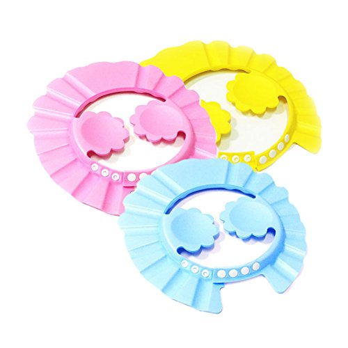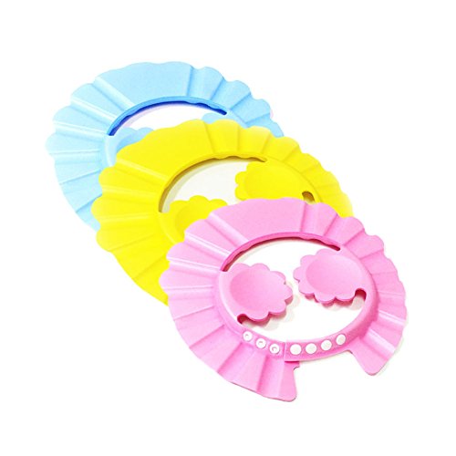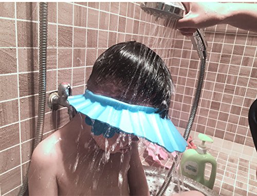 Hibote シャンプーハット かわいい 洗髪用帽子 サイズ調節可能 耳のシールド付き シャワー用防水帽 安全 保護 キャップ お風呂 浴室 子供 幼児用 ブルー