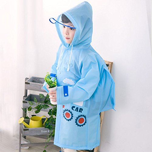Hibote レインコート 雨具 キッズ レインウェア 男の子 女の子 小学生 通学 バイザー付 110cm-120cm カッパ ランドセル 新学期用 リュックサックにも対応 ブルー M