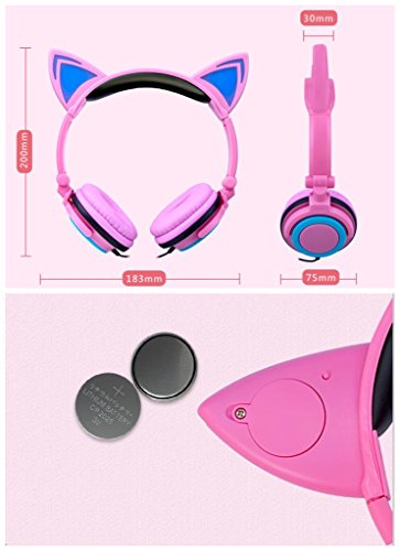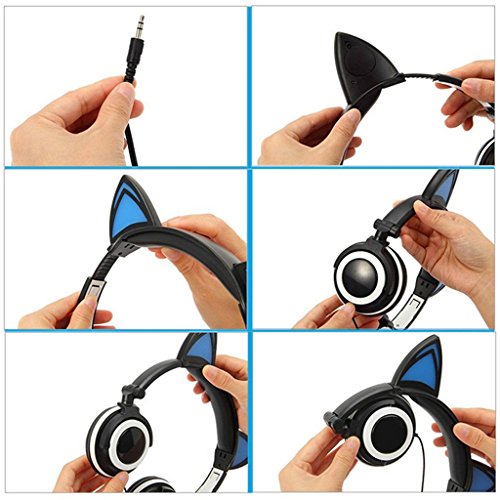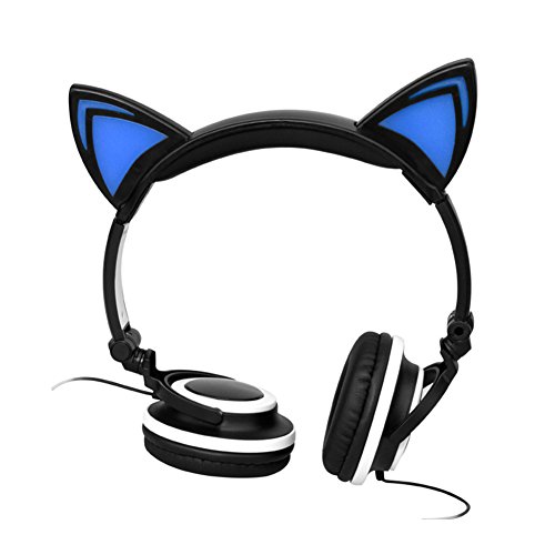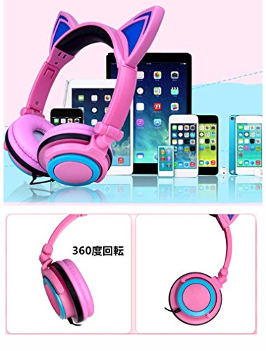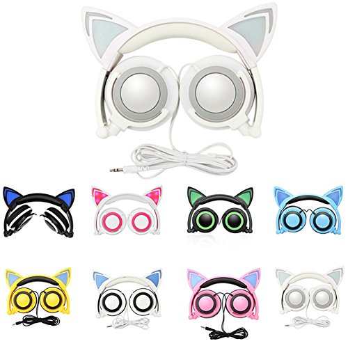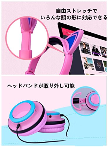 Hibote ネコ耳ヘッドフォン ヘッドホン キッズ ヘッドホン ポートを分かち合う 折みみた式 LEDライトつき ステレオ 猫の耳造型 超かわいい 密閉型 3.5mmオーディオケーブル マイク付きない 携帯 ゲーム機 グレーホワイト