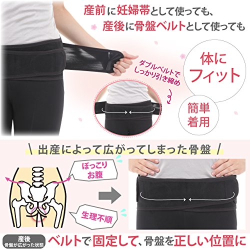 HighUP 妊婦帯 産前産後に妊婦帯・腹帯としてダブルベルトで体にフィットシリーズ フリーサイズ ブラック