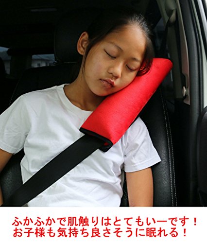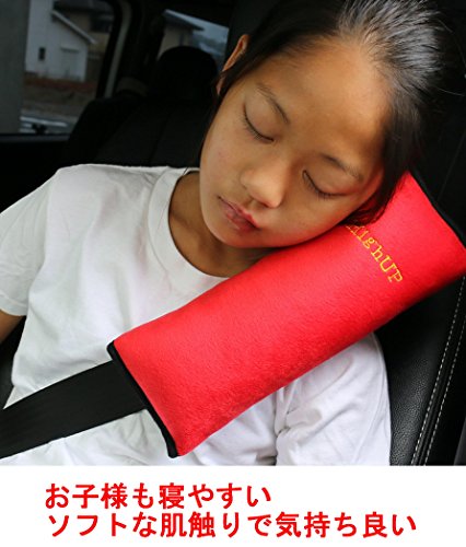 HighUP 超ふかふか シートベルト パッド まくら 枕 クッション カバー シートベルトまくら 携帯枕 子供 (レッド)