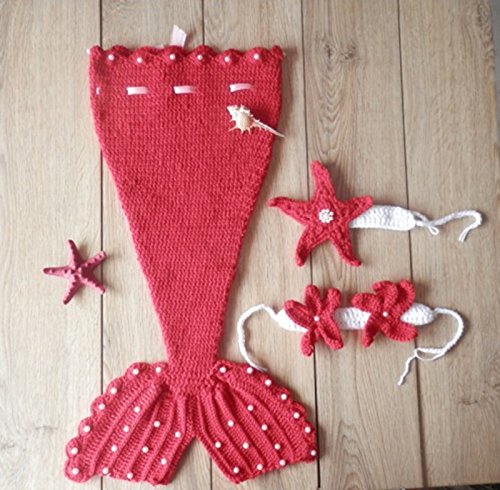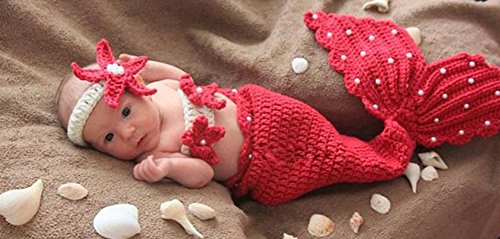Highdas ベビー 新生児写真撮り服 かぎ針編み ネット 0-12ヶ月赤ちゃんに適用 レッド