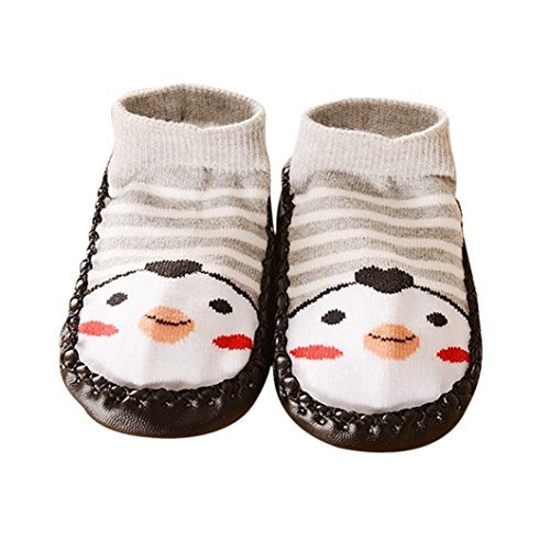 highpot赤ちゃん男の子女の子漫画ペンギンhigh-riseコットン滑り止め床ソックス カラー: グレー