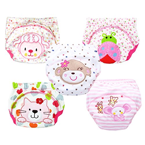 (ハイキングフライ)Hikfly 5枚組 3層とベビー服男の子女の子赤ちゃん幼児の子供の柔らかい綿ためのトイレトレーニングパンツ (M/80, 女の子)