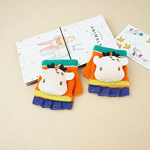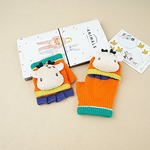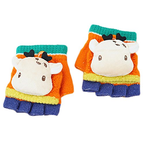 ハイキングフライ(Hikfly) ハーフフィンガーカバー ニットマジックグローブ 手袋ベビーグリルボーイズの幼児用アウトドアスポーツサーマルグローブウォーマーミトンクリスマスプレゼント(1-3歳) (鹿, オレンジ)