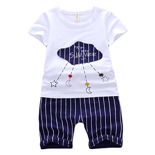 ハイキングフライ(Hikfly)ベビー服男の子女の子 赤ちゃん柔らかい綿ツーピース半袖 Tシャツ&ショートパンツ セット (ストライプ) (XL/24-30 ヶ月, ピンク) (XL /24-30ヶ月, 濃紺)