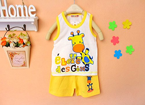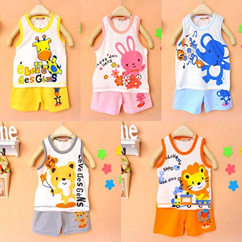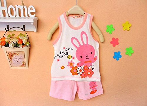 ハイキングフライ(Hikfly)二組 ベビー服男の子女の子 赤ちゃん柔らかい綿ツーピースノースリーブ袖无しTシャツ ベスト&ショートパンツ セット(動物) (18-24ヶ月, 女の子)